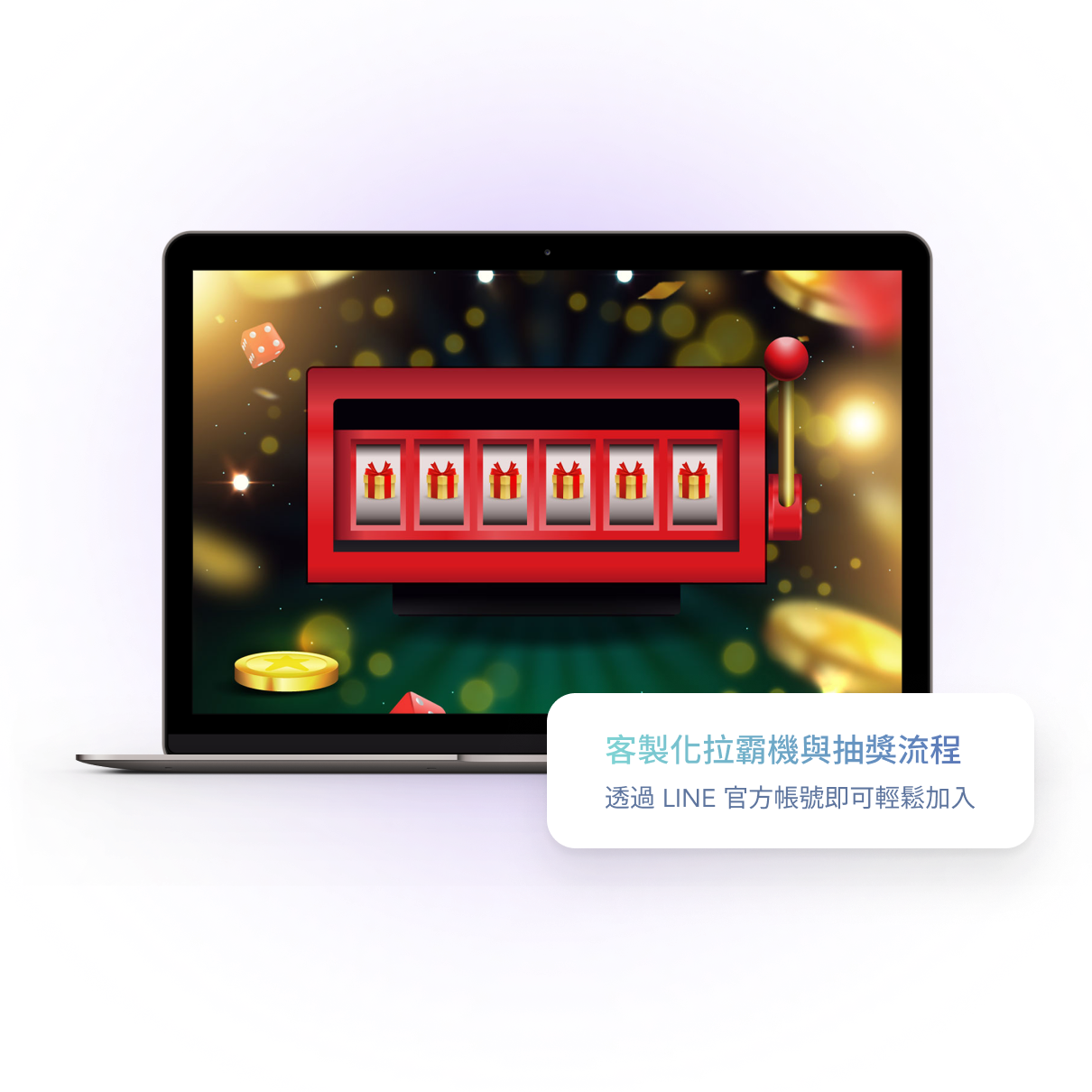 透過拉霸機的聲光效果與即時互動,現場參與者將留下深刻印象,同時也為品牌創造高可見度的社群擴散機會。從視覺體驗到用戶參與,皆可轉化為品牌好感與後續再行銷資源,讓每一次抽獎不只是「中獎」,更是品牌體驗的一環。