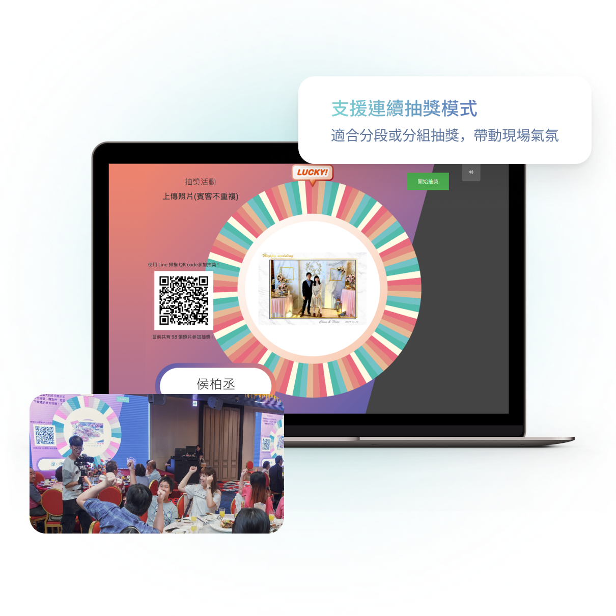 可在抽出得獎者之後可立即進行下一輪活動,抽選出下一位得獎者,適合用於分段抽獎、分組活動、闖關獎勵等多種場景。