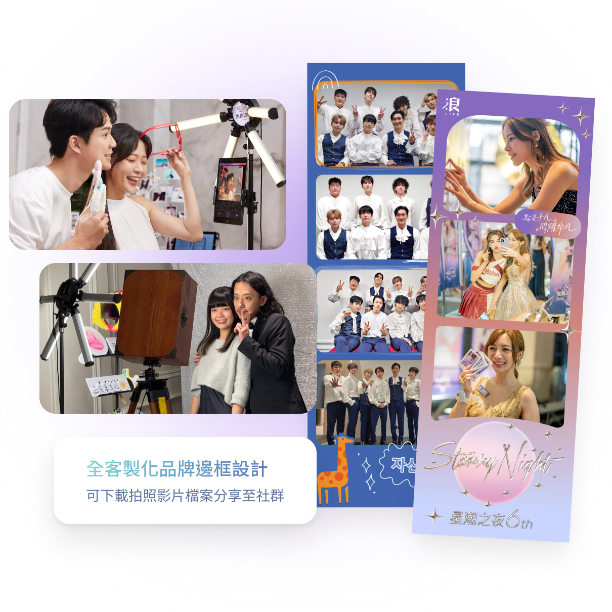 引進超人氣「韓式拍貼」風格,打造兼具質感與趣味的互動拍照體驗!拍拍印提供客製化韓式拍貼,還可以搭配專屬主題背板設計(如:品牌視覺)。